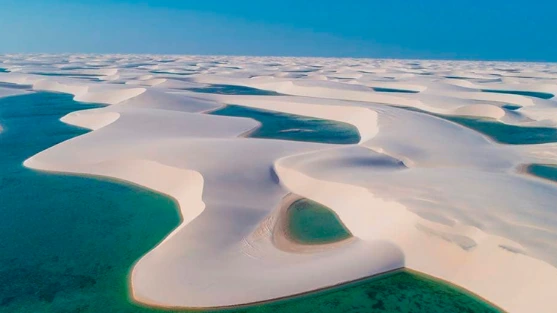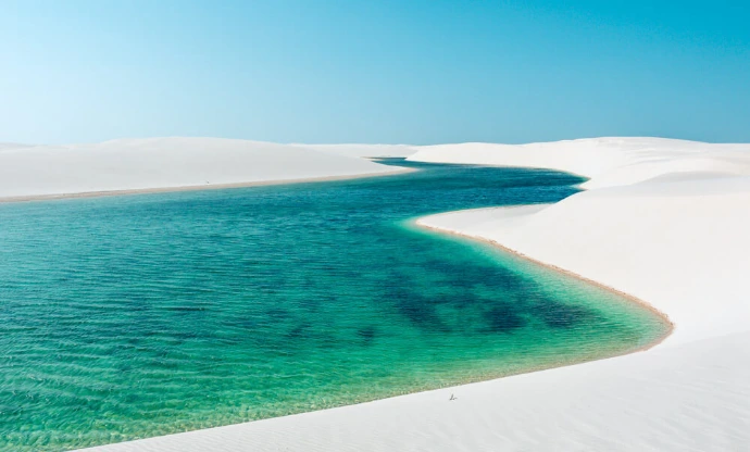 O Circuito das Duas Lagoas é um dos roteiros mais tranquilos e encantadores dos Lençóis Maranhenses. O acesso é feito em veículo 4x4, seguido de uma caminhada leve pelas dunas até lagoas de águas cristalinas e geralmente mais calmas.